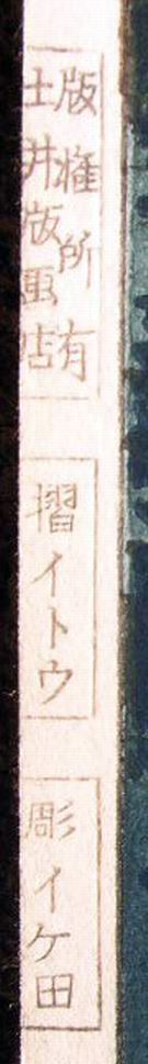昭和11年(1936年) 「東京風景十二枚」を同じく土井版画店より版行しており、清親ばりの風景版画を残した