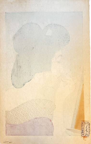 Numbered 30 out of an edition of 100. Limited edition of only 100 prints, after which the blocks were destroyed. Print No. 2 among the twelve published by Ikeda. Reference: The Female Image, 2000, pl. 179 |