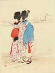 ARTIST: Kaburagi, Kiyakata (1878-1973) SERIES: KUCHI-E (book illustation) TITLE or SUBJECT: Viewing river SIGNATURE or SEAL: Signature and seal DATE or CIRCA: 1912 PAPER SIZE: 11 x 8 1/4 inches IMPRESSION/COLOR/CONDITION: Good/Good/Good CONDITION DETAILS: Original folds, binding holes, some wrinkling, light wear and soiling