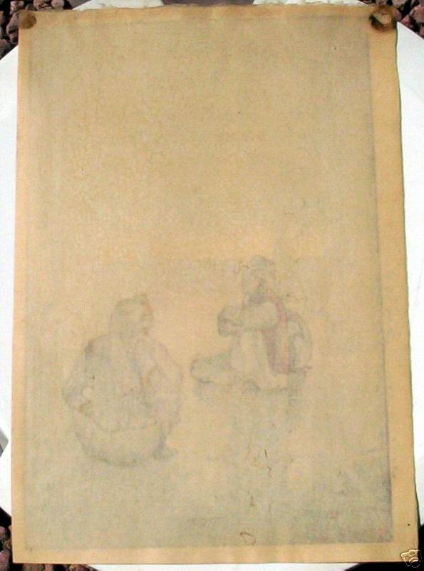 It is in good condition with a jizuri seal in the left margin and artist signature below. Do notice that this print does have an irregular edge along the top margin and two adhesive marks at the top corners.