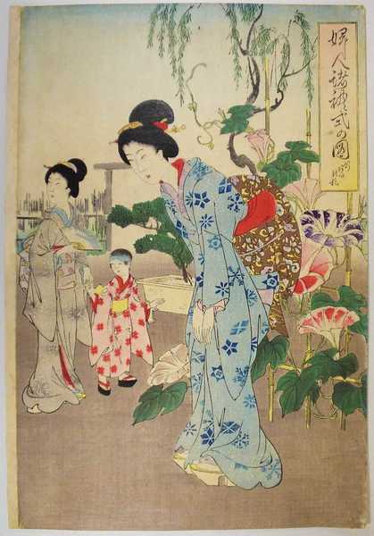 浮世絵オリジナル 周延 「婦人諸礼式の図」 3枚続