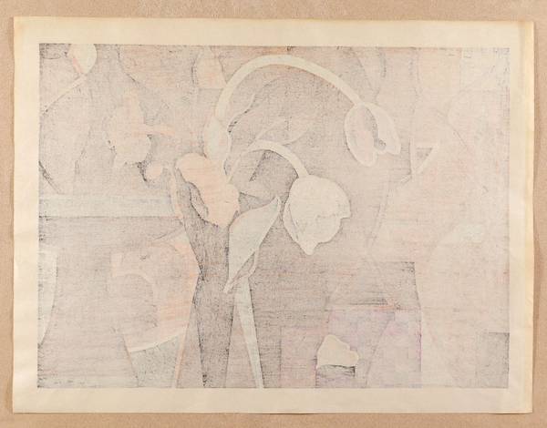 作家:馬渕 聖(まぶち とおる)    1920年(大正9年)生まれ、東京出身。    1994年(平成6年)歿、享年74歳。 1940年(昭和15年)東京美術学校在学中に光風会展初入選。 1941年(昭和16年)卒業制作「木版による自然物の装飾的表現」             文部省買上。 1951年(昭和26年)第7回日展に初入選。 1954年(昭和29年)日本版画協会(日版協)会員。 1957年(昭和32年)光風会会員。 1960年(昭和35年)日本版画会(日版会)創立に、             棟方志功らとともに参加。             日版協退会。 1967年(昭和42年)光風会評議員。 1971年(昭和46年)宮内庁用命により、須崎御用邸の為の             木版画4点制作。 東京美術学校工芸科図案部卒業。 日版会会長、鎌倉美術家協会理事長などを歴任。 東京、横浜、シカゴなどで個展開催多数。 シカゴ美術館、ボストン美術館など、海外美術館にも作品所蔵多数。