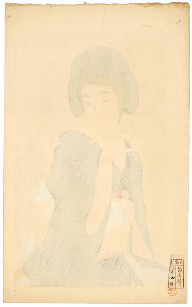 TORII KOTONDO Tipsy Date: 1932 (confirmed. Month most likely April: see DB entry #47931). 40.7 x 25.4 cm Limited edition of only 100 prints, after which the blocks were destroyed. Scene number 3 among 12 Ikeda published scenes. |