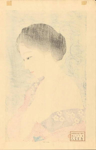 | Torii Kotondo (or Torii Kiyotada VIII) is renowned for his paintings and shin hanga prints of beautiful women. His woodblock prints, superbly carved and printed, are comparable with those of Hashiguchi Goyo and Ito Shinsui. Kotondo was born with the name Saito Akira in the Nihonbashi district of Tokyo. He was the only son among the five children of Torii Kiyotada, the seventh Torii master. The Torii school had a long tradition of painting and printmaking for the Japanese theater, extending back to the seventeenth century. Kabuki theater was still very popular in the early twentieth century and prints and painted posters were the primary means of publicity. Although Kotondo was mainly interested in studying history and archaeology, it was assumed that he would follow in his father's footsteps and join the Torii school. At age 14, Kotondo agreed to leave school and begin studies with Kobori Tomone, a yamato-e painter. Along with painting classes, Tomone taught Kotondo about the court and military practices of ancient Japan, satisfying his interest in history. A year later, he was officially adopted as the next heir of the Torii school and assumed the artist's name 'Kotondo'. While still studying with Tomone, he began designing illustrations for a theatrical magazine, Engei Gaho ('Entertainment Illustrated Magazine'), and painted kabuki posters and billboards. Torii Kotondo was the 8th Torii and the 5th Torii Kiyotada. His father was the 4th Kiyotada.