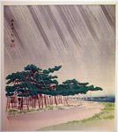 Title: The First Torii of Atago Shrine, Rainy Scene in Fall