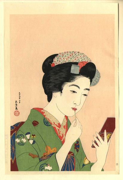 Title: "Girl Holding Lipstick" ("Benifude moteru onna")