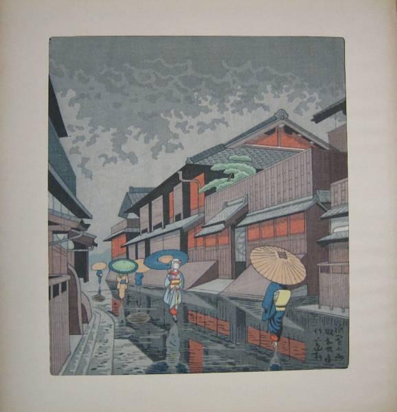Notes (this edition) These notes were written by the original owner/seller/auctioner of the item and may be inaccurate.: | Higashi Hogaganji temple Size: 26.6 x 30.2 cm. Self-printed in 1955. From a seldom seen series of famous views of Kyoto. In its original paper mat and folder. |