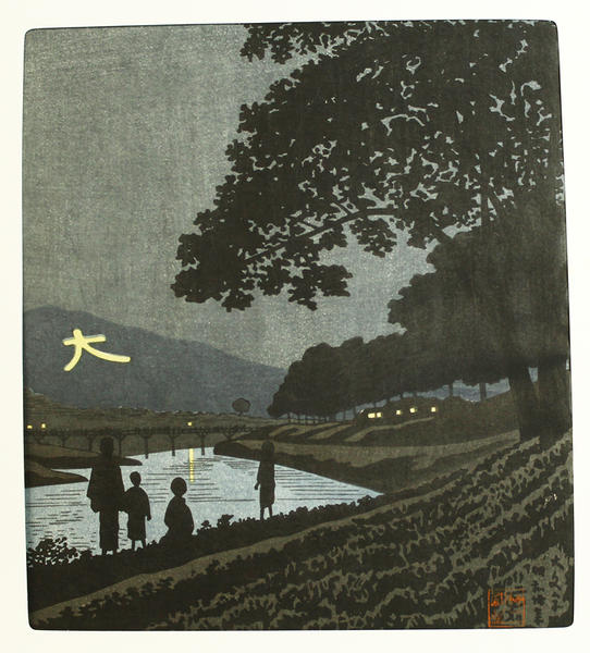 Daimonji Size: 26 x 30.2 cm. Self-printed in 1955. From a seldom seen series of famous views of Kyoto. In its original paper mat and folder. |