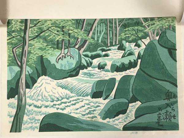 浅野 竹二 「自画自刻自摺木版画 青森二景・奥入瀬」