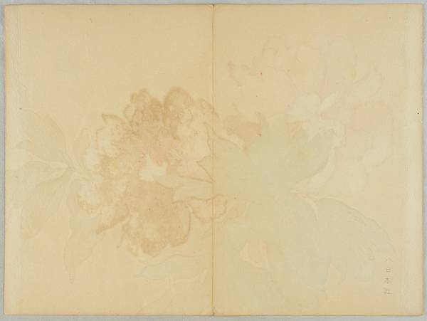Description Large pink peony blossoms. Finely shaded. Although much of Konan TANIGAMI's biography has been unknown, he produced many excellent flower-plant themed prints before W.W.II. The most of his works were printed in exquisite colors by the publisher Unsodo.