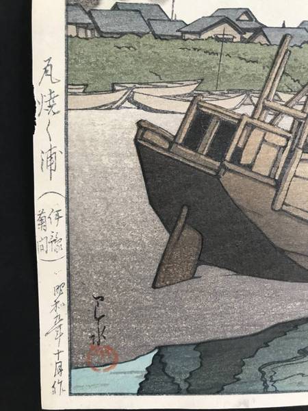 川瀬巴水 「日本風景集関西篇 瓦焼く浦(伊予菊間)」 昭和9年(1934)初期摺り Dシール 本物保証