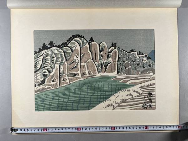 During the 1950's, Asano designed numerous landscape prints for the publisher Unsodo. These popular landscape prints are still being reprinted today. Original Unsodo prints have the Japanese date printed in the margin, while the modern reprints lack the date. Inspired by the encouragement of the Lithuanian-American social realism artist Ben Shahn, who once visited him in his studio and remained his friend, Asano established a freer artistic style often featuring animals in bold colours, later in his career. Asano continued to work as a printmaker during the 1970's and 80's. These late prints were simple and often humorous, signed with the letters T.A. and the date.