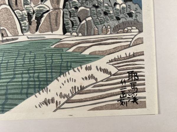 浅野竹二 自刻自摺作品 九州散見 耶馬渓 1枚、新版画 木版画、1963年、保存良美品