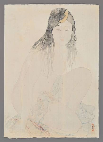 | Title: | Awabi Pearl Fisher — 櫛をさした裸婦 |