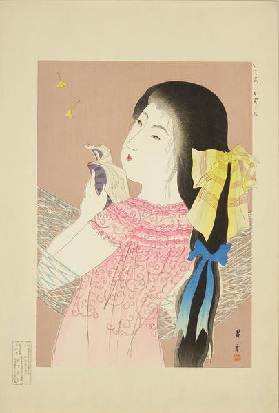 SHOUN Osuzumi (Enjoying outside cool), from Ima sugata (Modern looking), 1906 Good impression and condition 37.1x25.2cm. |