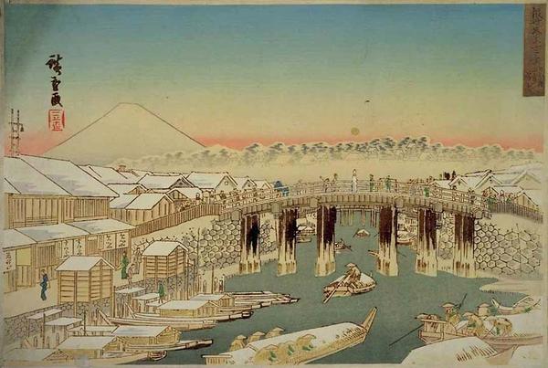 | Notes (this edition) These notes were written by the original owner/seller/auctioner of the item and may be inaccurate.: | From Hiroshige.org. Note they appear to have the title slightly wrong. This appears to be from the first/early edition. Note the title cartouche is within the image area. Title: Twelve Snow Scenes of the Eastern Capital (Ginsekai Toto Ju-ni-kei) Date: Publisher: Format: Oban Urushi-e Number of Prints: 12/12 References: Hiroshige (Albuquerque Museum, 1983) Notes: Hiroshige (Albuquerque Museum, 1983) - Although signed Hiroshige Ga, only the first eleven were done by Hiroshige I; the twelfth was by Hiroshige II. Inscribed in the album which contained these 12 prints is the following: "Since these are the famous lacquer paintings (urushi-e) of the venerable Hiroshige, please take good care of them with the greatest respect." |