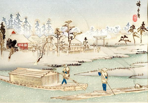 | Notes (this edition) These notes were written by the original owner/seller/auctioner of the item and may be inaccurate.: | From Hiroshige.org. Note they appear to have the title slightly wrong. This appears to be from the first/early edition. Note the title cartouche is within the image area. Title: Twelve Snow Scenes of the Eastern Capital (Ginsekai Toto Ju-ni-kei) Date: Publisher: Format: Oban Urushi-e Number of Prints: 12/12 References: Hiroshige (Albuquerque Museum, 1983) Notes: Hiroshige (Albuquerque Museum, 1983) - Although signed Hiroshige Ga, only the first eleven were done by Hiroshige I; the twelfth was by Hiroshige II. Inscribed in the album which contained these 12 prints is the following: "Since these are the famous lacquer paintings (urushi-e) of the venerable Hiroshige, please take good care of them with the greatest respect." |