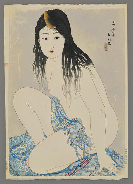 Hiroaki, Shotei, 1871-1945 Awabi Pearl Fisher Artist : Hiroaki, Shotei, 1871-1945 Date : 1931 Medium : woodblock Item# : FWG23999 Condition : Minor rubbing of mica, particularly at top left Dimensions : 20 1/2 x 14 3/ inches Illustrated : Shotei.com, pl. O-69 Comments : Published by Fusui Gabo; mica background; for exhibition only Provenance : Stein Collection |