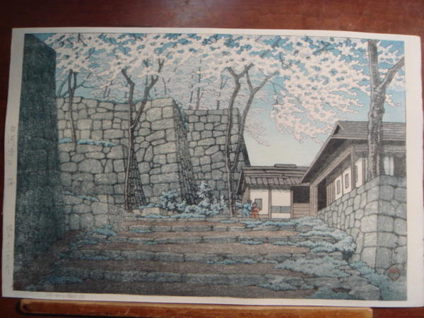 1946 Kawase Hasui Japanese Woodblock Print Shirakawa Castle Ruins Cherry Blossoms. This print is part of a fresh collection brought to market with low reserve to intice bidding. Will have more from this collection up in the following weeks. Have fun!. Measures in inches:15 1/2 x 10 1/4 and the condition is Has fading and toning |