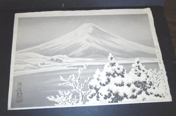 Artist: Terunobu Title: Mt. Fuji From Shoji Medium: Original Japanese Woodblock Print