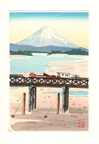 Notes (this edition) These notes were written by the original owner/seller/auctioner of the item and may be inaccurate.: | Japanese small woodblock print - Mori Masamoto - Fuji + traveler