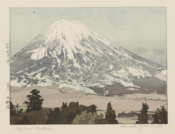 Notes (this edition) These notes were written by the original owner/seller/auctioner of the item and may be inaccurate.: | From https://theartstack.com/artist/hiroshi-yoshida-1876-1950/fuji-from-gotenba-1929 |