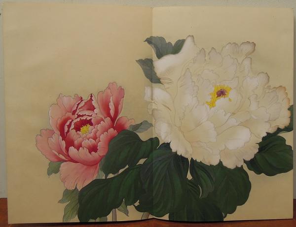 Tanigami Konan peony prints are large, exceptional, eye-catching designs that would make a beautiful traditional Japanese centerpiece in any room. We rarely see these lovely designs and they sell quickly. Don't miss this opportunity to acquire a terrific design from this fantastic floral series.